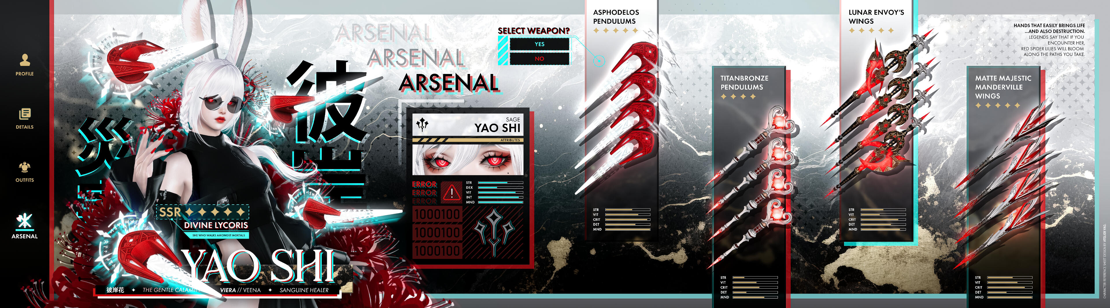ABOUT ME   Hi, I'm Yao! Most people that know me, know me as the owner of Senpan Tea House. I'm a sage main ingame, and a UI artist for a game company irl, with an unhealthy obsession for both raiding and designing!  CONTACT   For any and all inquiries about commissions, access to commission forms, and to see my extended portfolio, please check out my Discord server. You can reach me from there as well!
